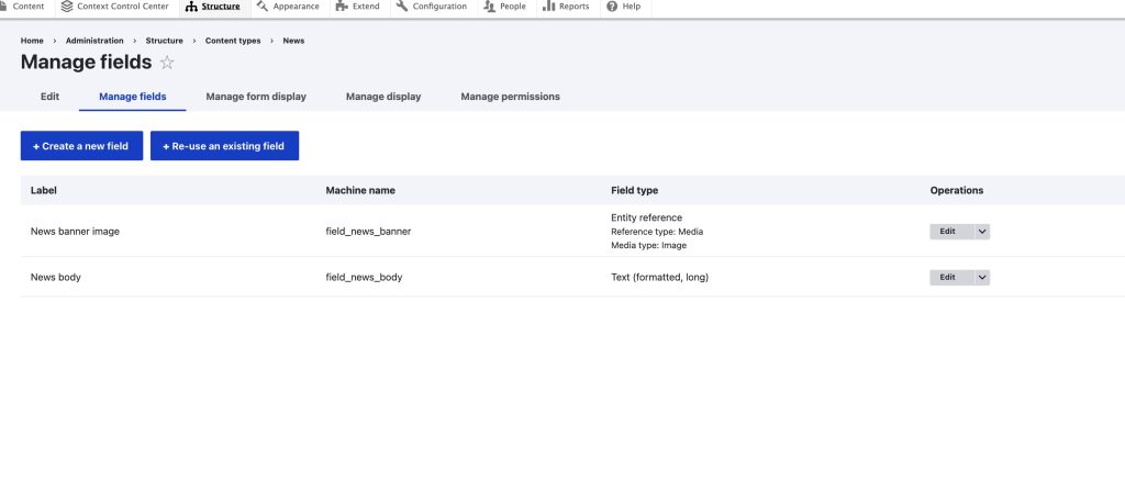 In right side you can see the result saying created news content type. If we are checking in content type, we can see new content type ‘news’ without any fields. Here we asked to create fields, this Agent will only create content type.